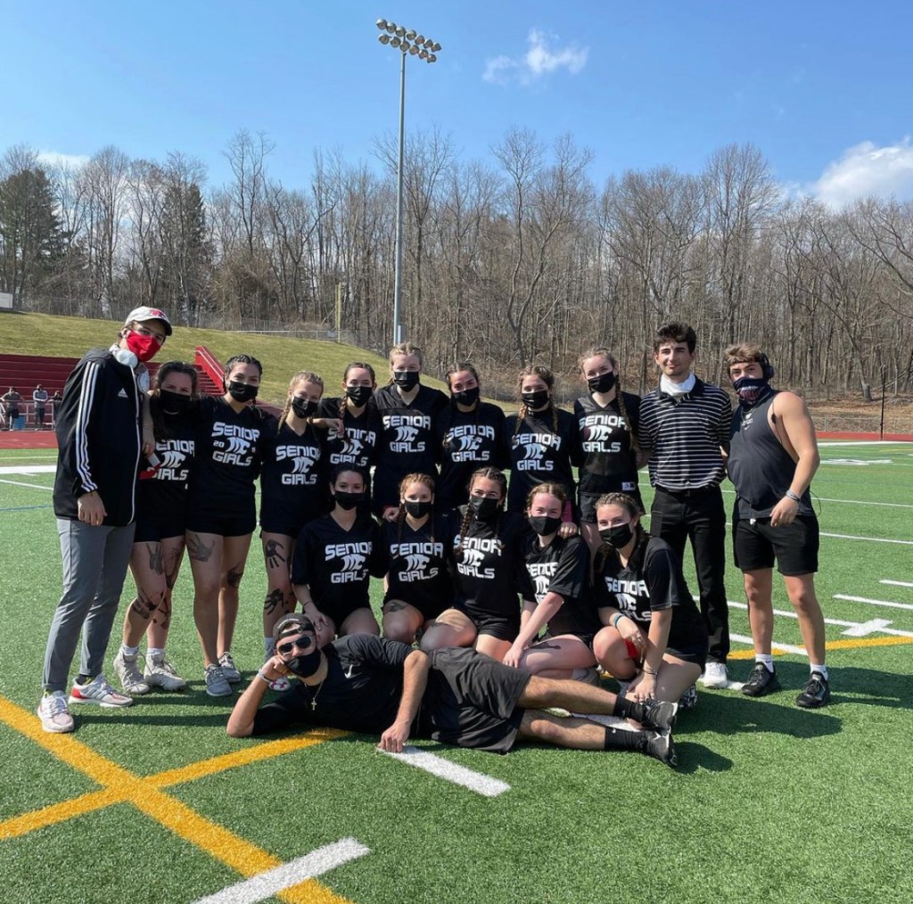 “We planned the Powderpuff Game back in the fall, with the intention that it would be a fun event for seniors with some semblance to that of a homecoming,” explained senior class president Grace Shawah. “Luckily it was easy to follow the COVID guidelines that the state had laid out for boys football, so Mr. Swensen made our proposal to the DPH based on those regulations.”
