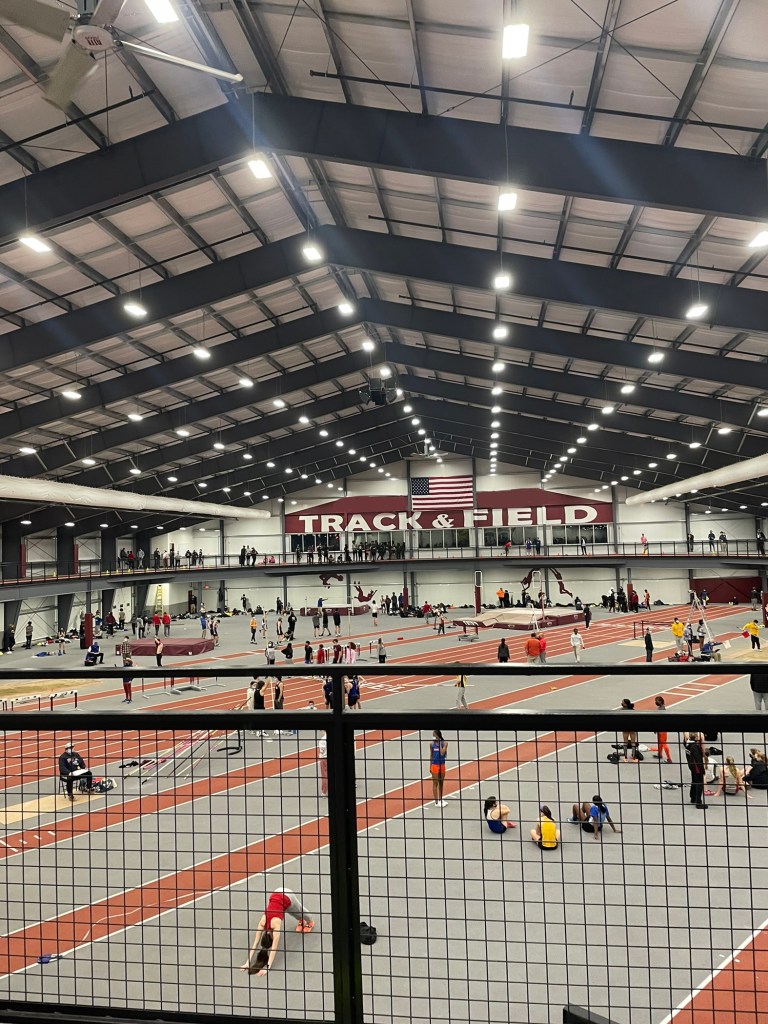 In the 55 meter hurdles, Maxwell Pizzalato got a time of 9.13 seconds. In the preliminary rounds and then during the finals, he ran all out and got 8.77 seconds. He got second place in hurdles out of everyone. In addition to this, he did shot put, throwing a notable 41 feet 4.75 inches. With this throw he landed himself in 5th for shot put, scoring more points for Masuk.