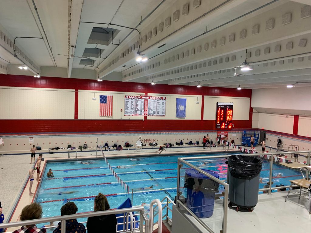 The Masuk Boy Swim and Dive team approaches the end of their season before SWCs, and competed at their final home meet this past Tuesday. Though all the swimmers put up a great fight, our Masuk team was unable to achieve the greater number of points and the meet ended with a 96-80 Masuk loss. Coach Emily Demace predicted that it would be a close match, and that was shown in the swimmers’ times. Sophomore Jonathan Ganino explained,“Many times the races came down to fractions of a second between the swimmers. I think it was a very good match up”. Though the Brookfield team came out on top, Masuk spirits were high and the boys continued to cheer each other on and instill confidence in one another. Sophomore student Gavin Gabriel said “As soon as the first meet started, I could tell we would click and work together really well. We’re always cheering each other on no matter the score, giving each other confidence.” From the start of the season, the boys have not only grown closer, but they’ve progressed greatly and captains Kenny Clark, Ryan Kanjo, Thomas Micu, and Ryan Youngcourt, have all been great role models for the rest of the team. Ganino described, “Our captains definitely stand out among the team, leading us along and scoring in many of the events, these four really hold Masuk’s swim team together.” All the swimmers succeeded in performing to the best of their abilities and pushing one another to progress throughout the season. Sophomore student Jacob Urkawhich said, “I feel like I performed well in Tuesday’s meet, most of my times were SWC worthy, but for most of us, that’s just the start. There are many I can do to tweak my form or adapt my pacing to get a faster, cleaner swim. Turns off of walls are essential to a good swim… We spend much of our time trying to nail those important speed boosts at practice. I myself choked up a turn that cost me my time in the 100 free.” Though putting up a hard fight did not grant the boys a win at this past Tuesday’s meet, the boys will soon progress to SWCs and we know they will fight hard and compete the best they can to represent Masuk.