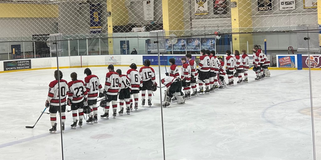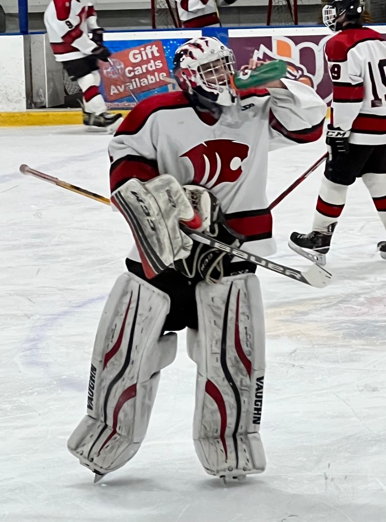The Masuk boys hockey team braved the cold ice and began to heat up their two-game losing streak by defeating the co-op team of Bolton, Coventry, Rockville, and RHAM. The boys started the night out with a record of 10-7, and ended it with another win at 11-7. Jay Miguel, Jack Cirillo, Jake Takacs, Justin Taleman, Tory Beck, and Andrew LaBella took to the ice alongside their families and friends this past Wednesday night in a nail biter of a senior night game. Masuk took on the Northeastern Shamrocks, home, at the Shelton Rinks.The Panthers’ fan section roared as students and fans supported the seniors as the conclusion of the hockey season quickly nears. The student section supported our boys fully decked out in Masuk’s very own red, and cheering with relentless support. The game started off fast as Tory Beck saved a shot from the opposing team within the first few minutes. Beck’s skills were on display as he caught shot after shot and witheld the Shamrocks from scoring. With 11 minutes and 37 seconds remaining in the first period, junior Captain Drew Scalia wipes out, spraining his ankle. The team attempts to bounce back, and in the last few seconds of the period, junior AJ Michetti takes an attempted shot on goal. The period ends before any other plays are are made, and resumed strongly in period two when Masuk jumped out to a 1-0 lead thanks to junior Austin Braiewa. Not even 20 seconds later, junior Kyle Sutfin scores, putting Masuk up 2-1 against the Northeastern Shamrocks. The boys’ hard work and determination showed with these two back to back goals, working like a well oiled machine on the ice. The players fought hard as penalties flew left and right, but our boys refused to give up the lead. Period three started on a high note with another goal by Sutfin with 13:54 left on the clock. Next, Braiewa comes in with his second goal of the game, leading Masuk to its 4-1 win. Our Masuk Panthers now celebrate a huge senior night win and head into their post season qualifiers with high hopes of carrying this energy far into the tournament.