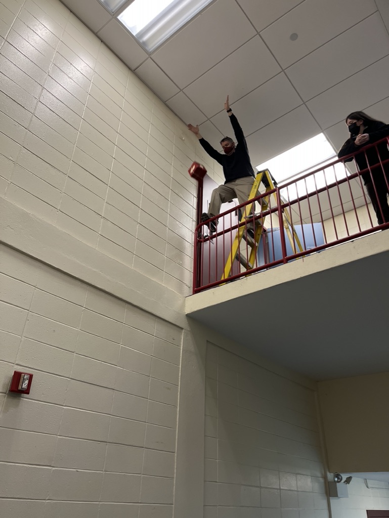 Throughout the school year, the physics classes at Masuk create projects that test the theories they are currently studying in class. Peter Schmitt’s physics students are currently learning about momentum, and to test this the students must create an enclosed and secure carrier to protect an egg from any fall damage. After being dropped at smaller heights, including 10 centimeters, twenty five centimeters, and fifty centimeters, the egg can be dropped from all the way up to six meters. The carrier needs to weigh at least three pounds, or 1500 grams, to make sure it falls straight to the floor. The students were allowed creative freedom when designing their carrier, and points were given for theme and overall performance. Sophomore Virginia Grabovsky stated,