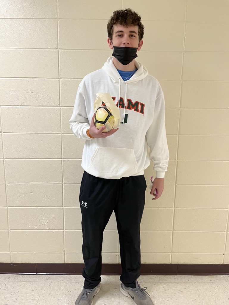 “It was late at night and I realized that I needed to finish my project. I noticed a small soccer ball on the floor and thought it would work. I cut open the soccer ball and threw some flour, wire, and popcorn in there for extra protection. My egg has survived all of the drops so I guess it worked.” Domenichelli admits.