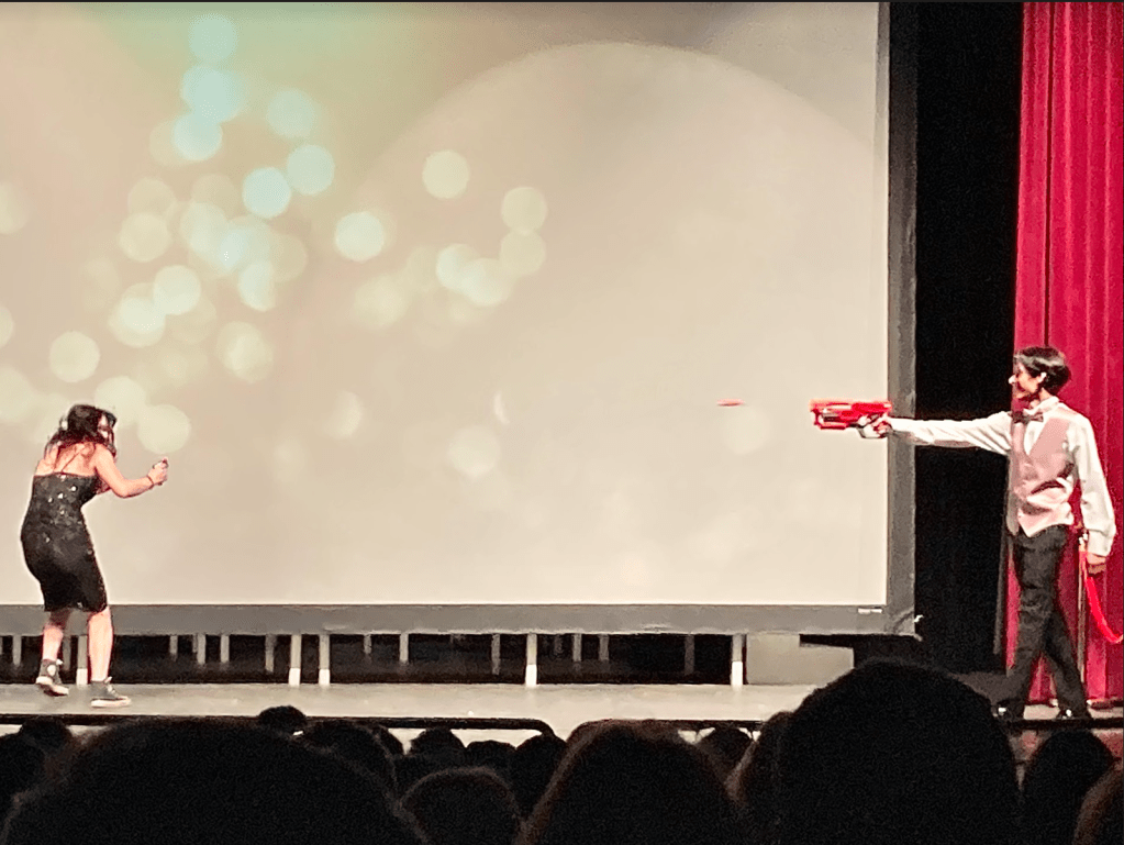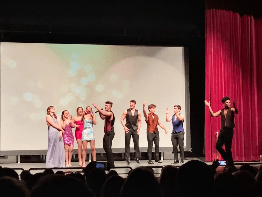 The second portion of the event was especially interesting, as it incorporated skits into the fashion show with props ranging from a drum set to nerf guns. Senior Regan Slattery, a participant, stated, “I thought the experience was really fun, it was kinda awkward at first because you’re in a group of people you’re not really friends with, but everyone was just really nice and welcoming.” And when asked if she’d recommend that students join in future years, Slattery replied, “Yes! It’s such a fun experience and everyone in the crowd is super supportive so don’t be nervous!” Overall, the Prom Fashion Show was once again a huge hit, and is a must-see in future years.