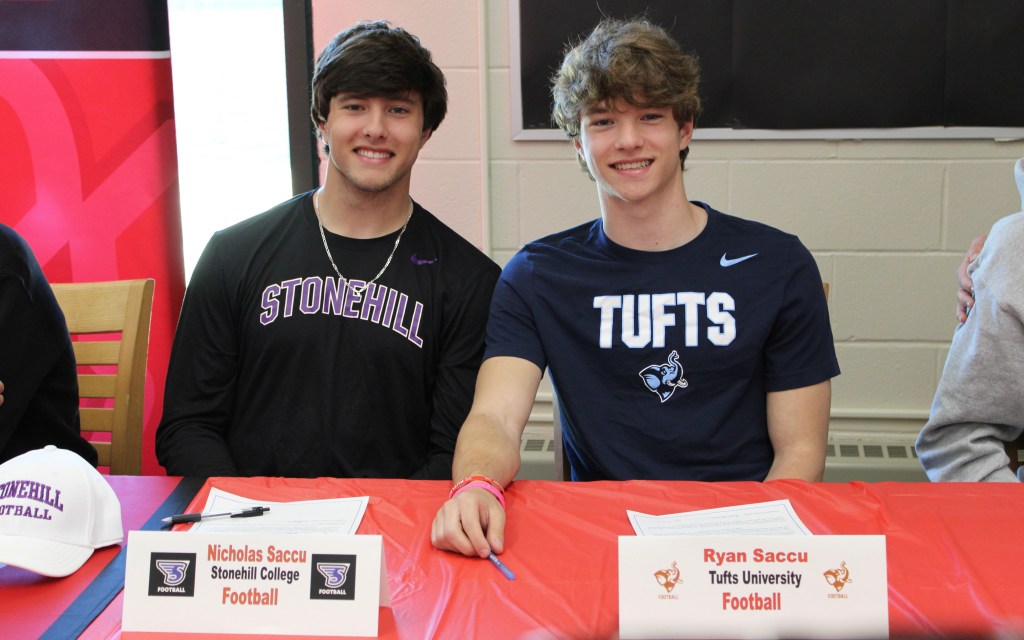 “Having my family and friends there to support me meant the world to me because it really showed me how much this accomplishment means and who really cares about me and my future. They were all by my side during the recruiting process, so it only felt right for them to be there when it became official. Signing with the other athletes was really cool because I have been friends with most of them since middle school and to see how we have all grown to further our lives at the athletic level just shows how hard we all worked to reach our goals,” R. Saccu explained.