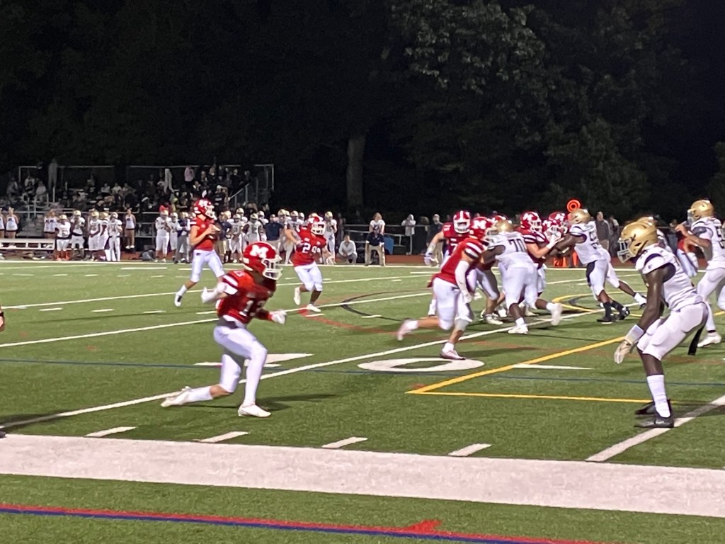 A significant advantage it was, with the final score being 38-0 Masuk. The first touchdown was made by senior quarterback Dylan Jackson (#7) on a 10-yard run just minutes into the first quarter; sophomore Gavin Walker (#12) later doubled the score with an 8-yard rushing touchdown. Second-quarter scoring opened up with a touchdown by Shane Walker (#11) off a 39-yard pass from Jackson and ended with Masuk’s choice to convert a late field goal right before the buzzer. The Panthers led 24-0 into halftime.