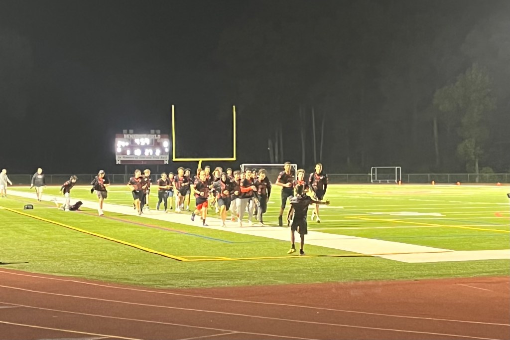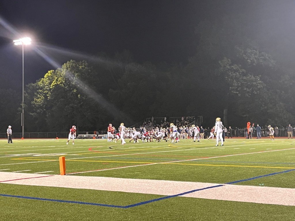 Friday’s halftime was used to honor Monroe’s “future panthers” and their coaches, as ages 6-8 flag football players, 8-11 tackle football players, and the Monroe Lions took their turns running around the field. D-8, D-10, and D-12 cheer, who had been on the sidelines with Masuk for the first half, then took their turn. At this game especially, Masuk’s Panthers demonstrated the legacy they’re leaving for these kids.