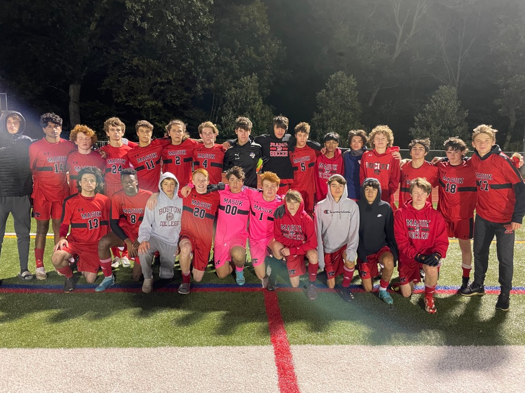 On Thursday night the Masuk boys varsity soccer team led by captains Roger Fekete, Chris Simoulidis and Riley O’Donnell took on Kolbe-Cathedral in a non-conference game on Benedict Field.