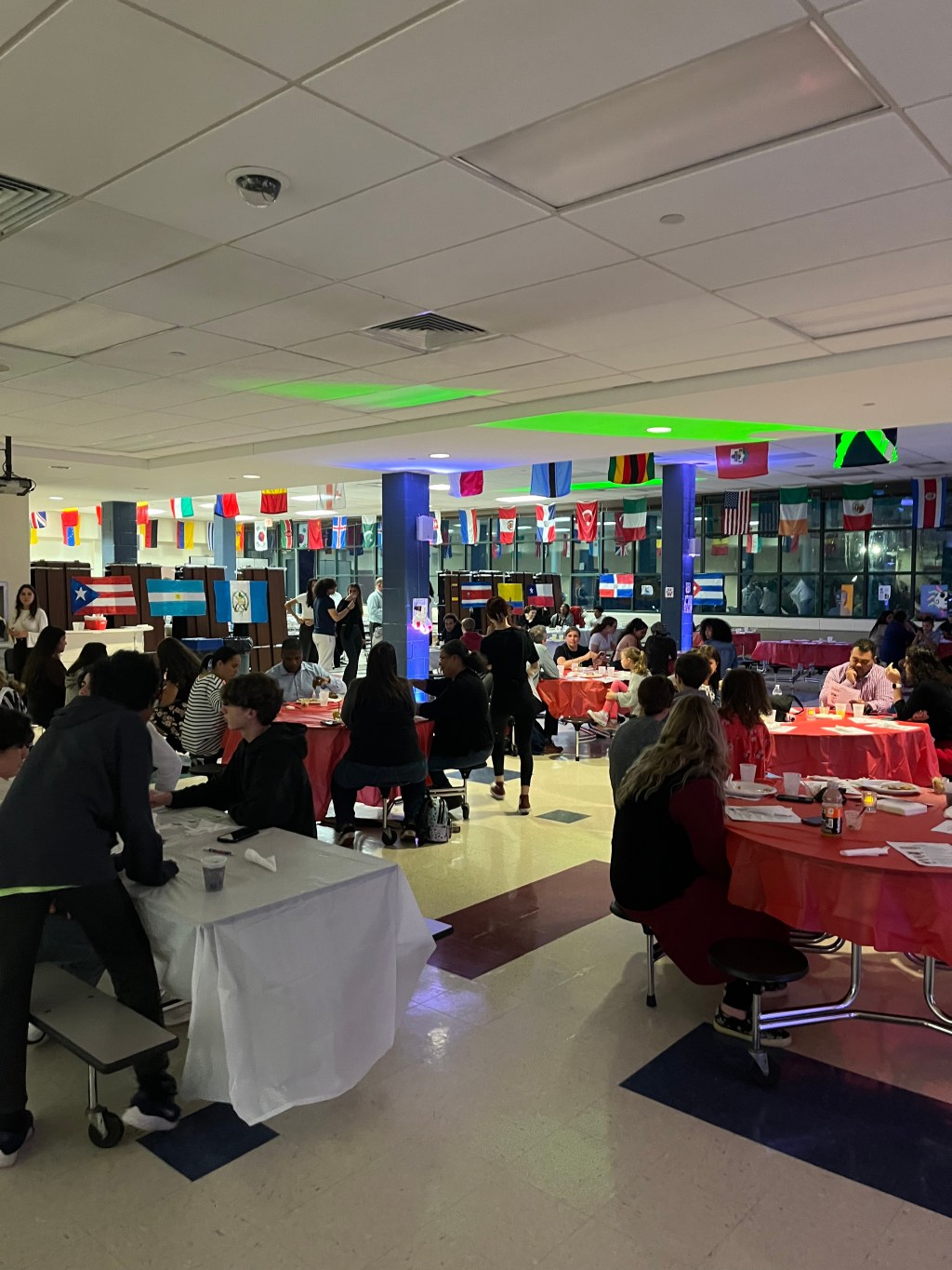 The night started with a delicious dinner. The Masuk cafeteria was well-decorated, resembling a restaurant. Tables were decorated with a vibrant red tablecloth, small candles, and plenty of menus displaying the tasty-sounding meal. Alongside the decorated cafeteria, catchy and popular Hispanic music like reggaeton and bachata played.