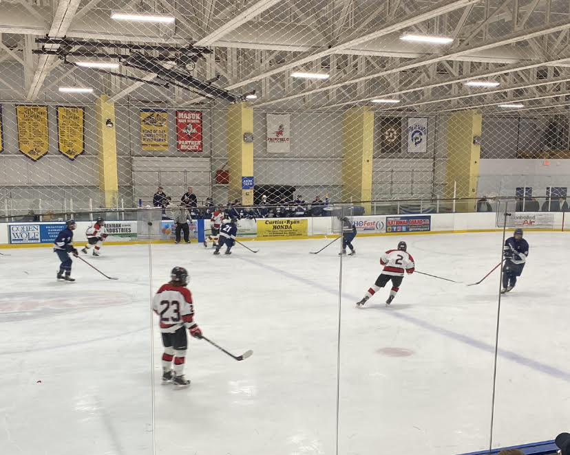 Masuk controlled the puck for the first period, and Captain Drew Scalia and senior Alex Maia dominated with multiple big hits. Despite the collisions, the first period ended 0-0 as the boys headed to intermission.
