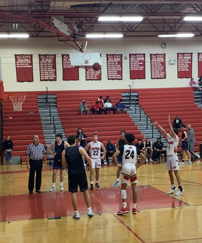 Masuk’s starting line up of Tyler Newsom, Dylan Jackson, Greg Nivison, Owen Smith, and Ethan Palma helped the game start off strong with high intensity. With back and forth plays and a fast offense, the score quickly grew. The first quarter ended with a Darien lead 22-20.