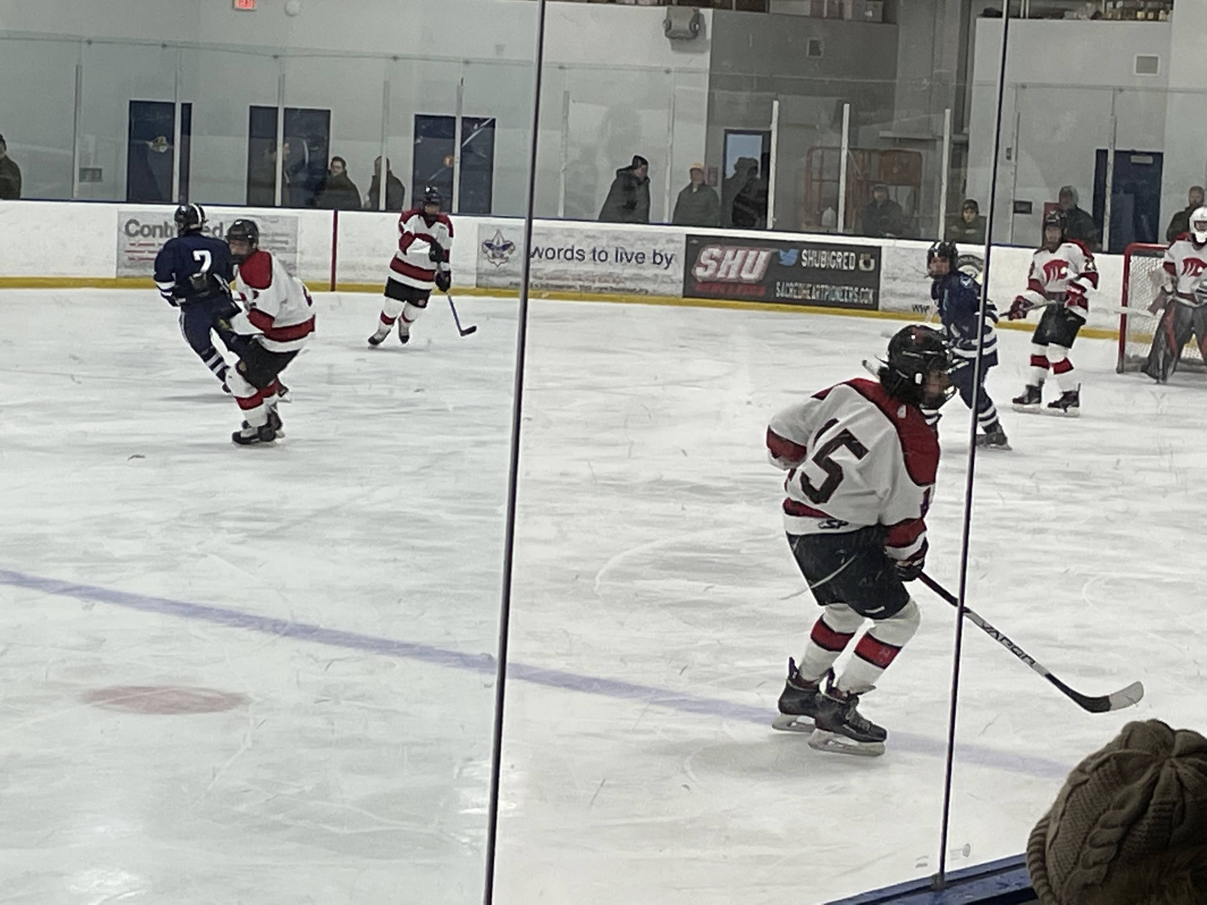 On Saturday, January 14th, the Masuk boys hockey team faced off against the Wilton Warriors at the Shelton Rinks.