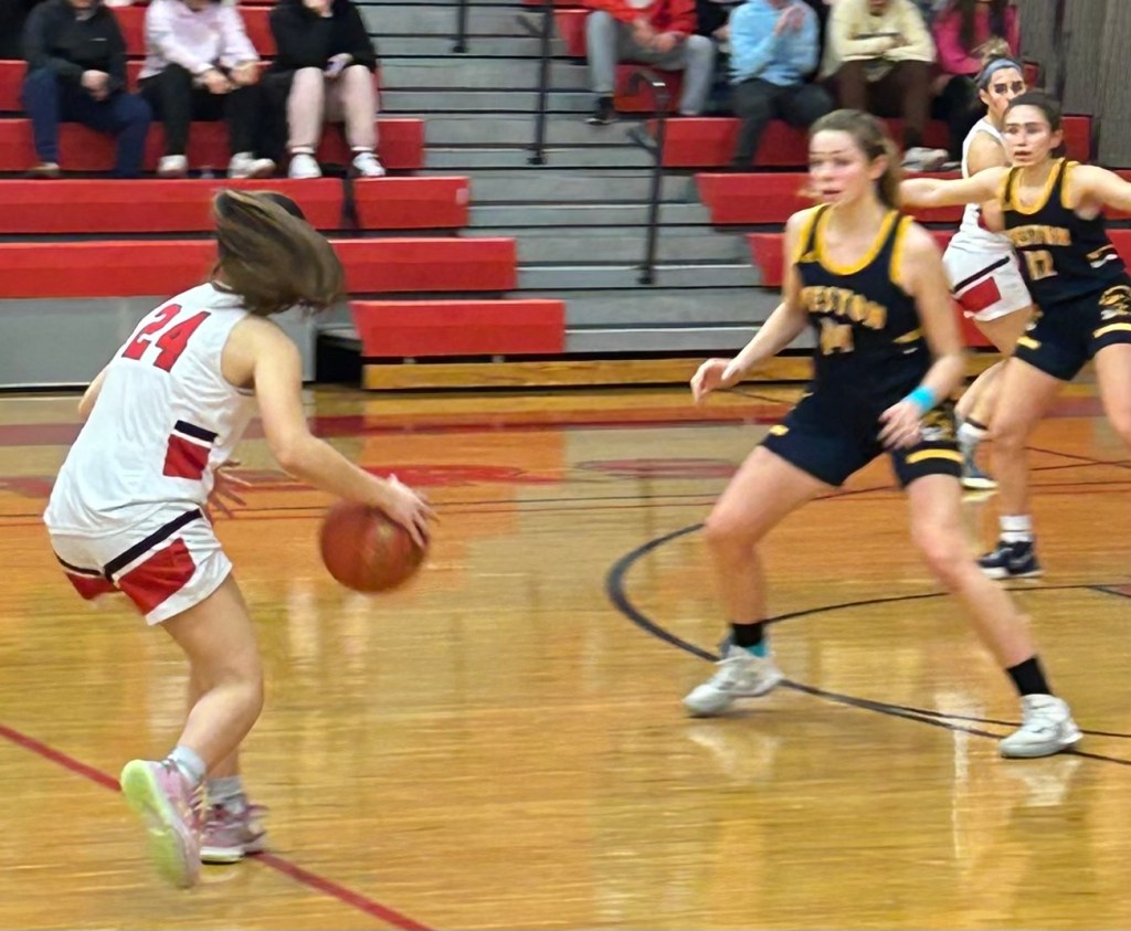 Quarter 2 opened with more passing and movement of the ball between members of the team, and Natalie Lieto getting consistent rebounds off of both baskets. The team scored a basket thanks to Hannah Fagan followed by numerous rebounds from Natalie Lieto and steals from Fagan and Sofia Lieto. This was followed by Sofia Lieto scoring two free throw shots and a basket from Ventresca. Ventresca quickly scored another basket, followed by a basket scored by Grace Kearney. The team was doubling Weston’s score at halftime, with a score of 25-12 at the end of the second quarter.