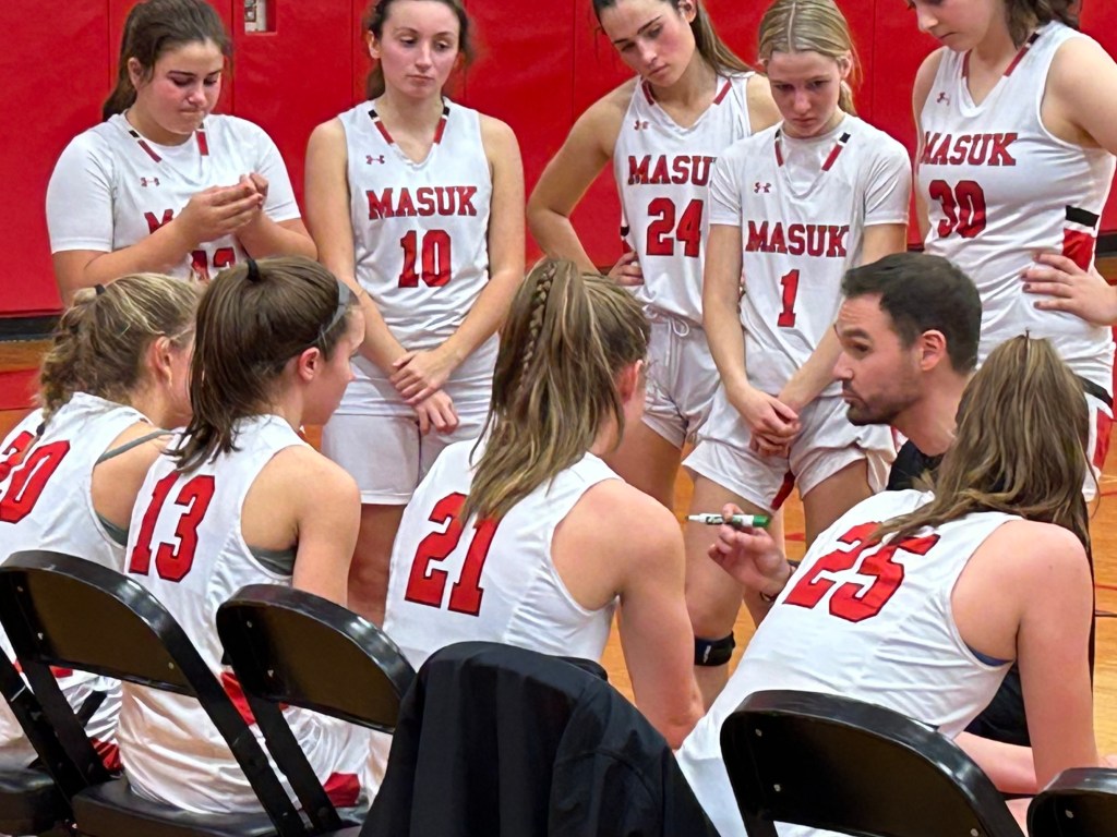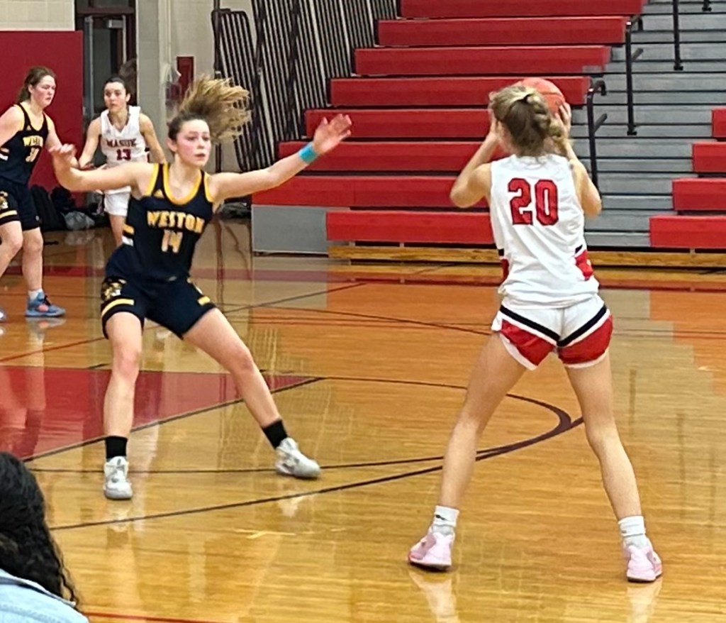 Last night the Masuk girls’ basketball team suffered a loss against the Weston Trojans, ending the game with a final score of 52-59. They played Weston in a home game at Masuk High School, going into overtime at the end of the game, after having a tied score of 46-46 at the end of the 4th quarter.