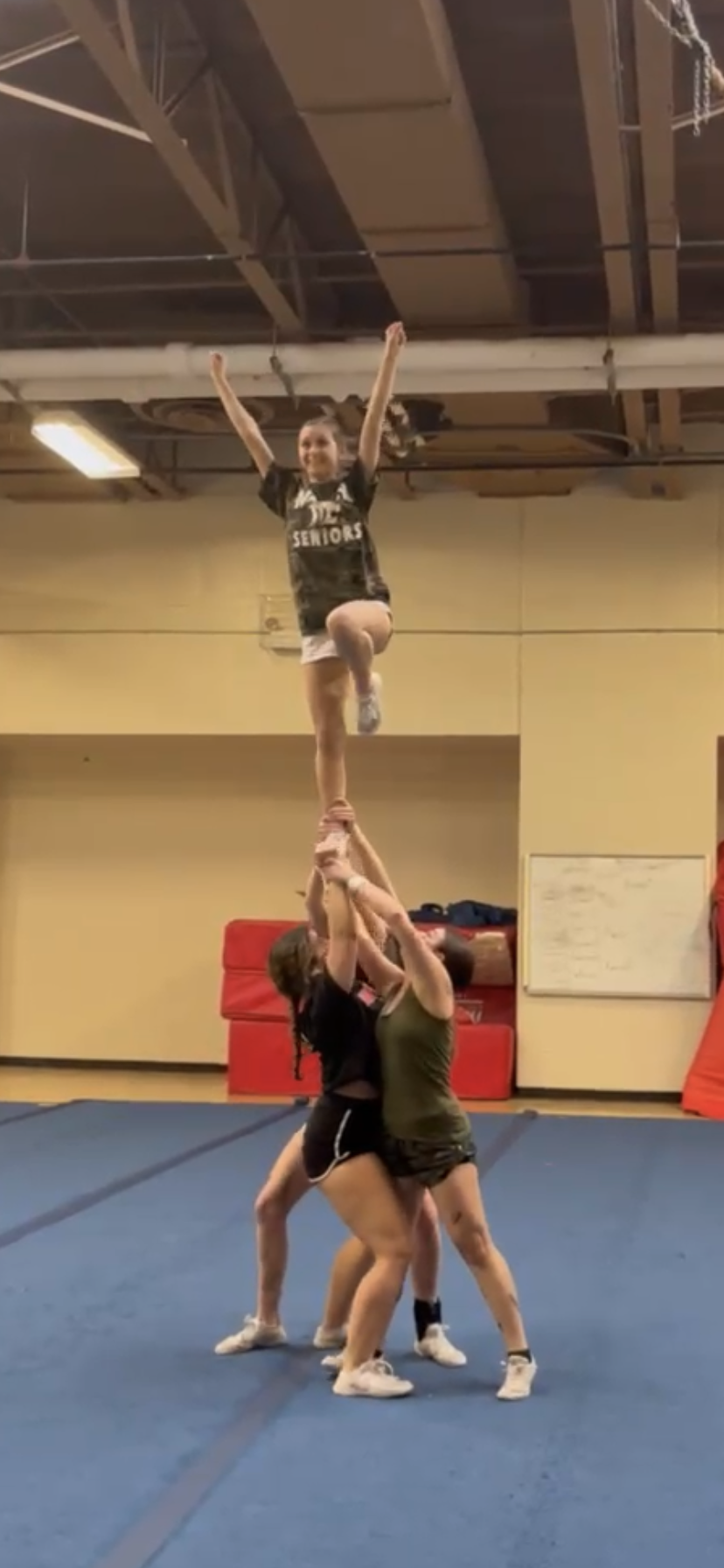 Even though cheer competitions are built for being watched by crowds, their turnout is considerably less than the masses that show up for football games. Part of this is due to the thirty-minute drives to competition locations, but part of it is also due to a lack of awareness. Red Army, the Instagram account that posts about sports-related Masuk news, does not post about upcoming cheer competitions. They never appear in a color-coded wave to support the team that always cheers them on.
