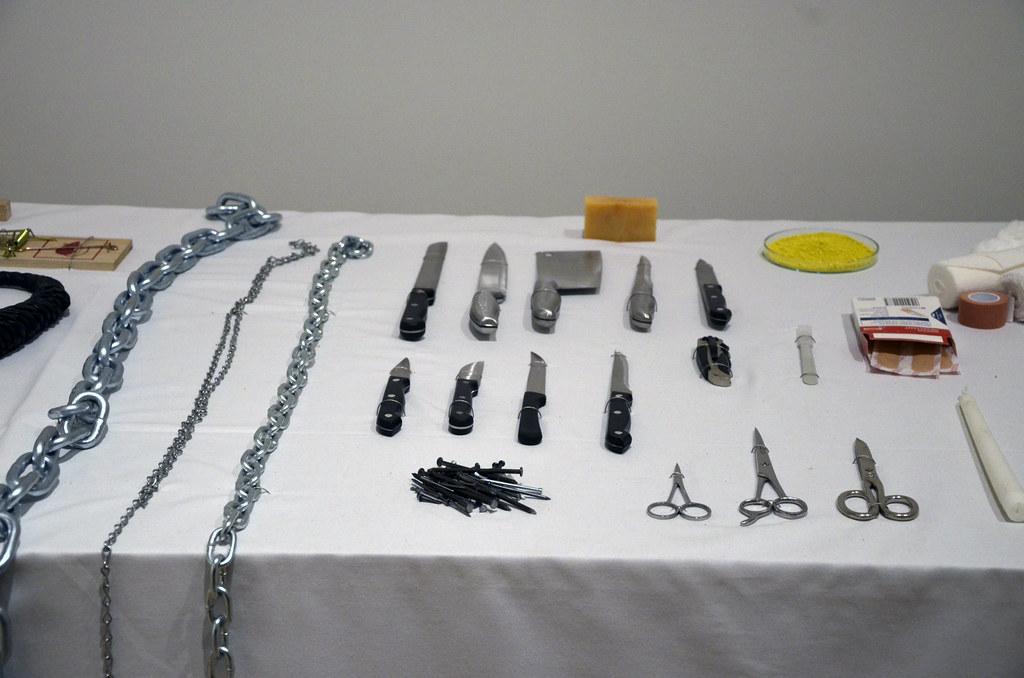 Abramović allowed the audience to do whatever they wanted to her for six hours as she stood still. In the room with her was a table of 72 objects ranging from a pen to a loaded gun. By the end of the time, her clothes had been ripped off and a man even cut her neck with a razor blade and drank her blood. She was forced to hold the loaded gun up to her neck, all while staying completely still, despite the tears falling down her face.