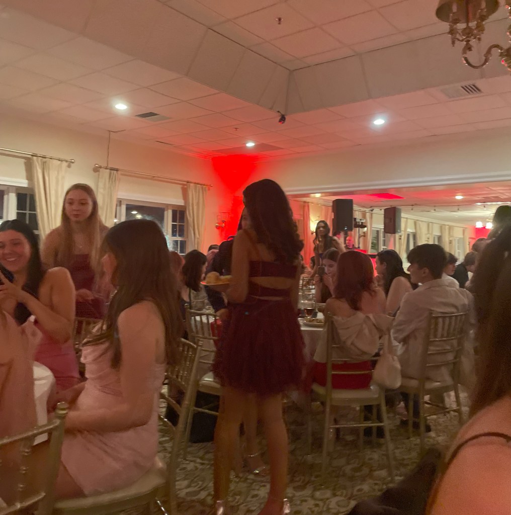 Each grade has their own special dance to attend that is a staple of that year in high school, and for sophomores, it is the Ring Dance. With only a short five minute drive away from Masuk, over 100 students pooled into the Stone Barn at Whitney Farms to receive their rings, eat free food and enjoy the DJs music. For the price of 40 dollars, students were able to attend this exciting event from 7-10 pm. The sophomore class advisor, Jennifer Gampel, expanded on this and stated, “Students purchased tickets for the ring dance so their ticket covers a full dinner, dessert and DJ.”