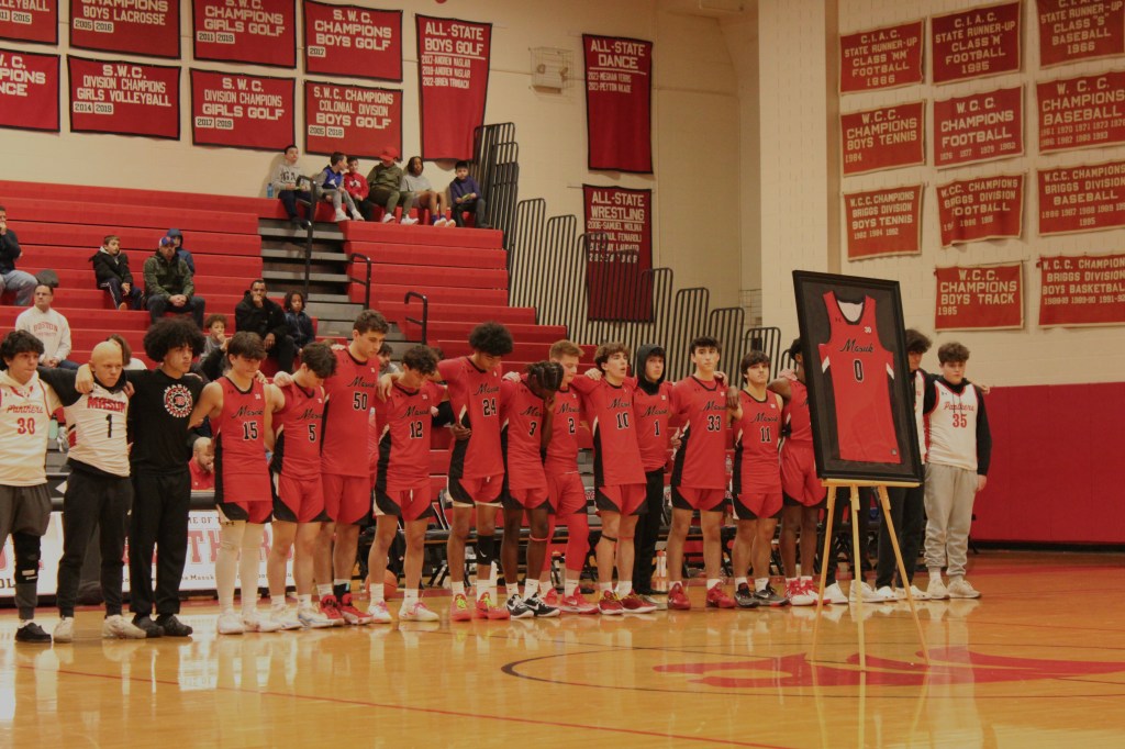 Thursday’s event included a ceremony for Coach Pete, followed by the matchup between Masuk and Weston, with games, trivia, and raffles throughout the night. The ceremony consisted of a speech honoring Coach Pete and all of the contributions that he made to the town of Monroe and our community, followed by retiring the number zero in remembrance of Coach Pete.