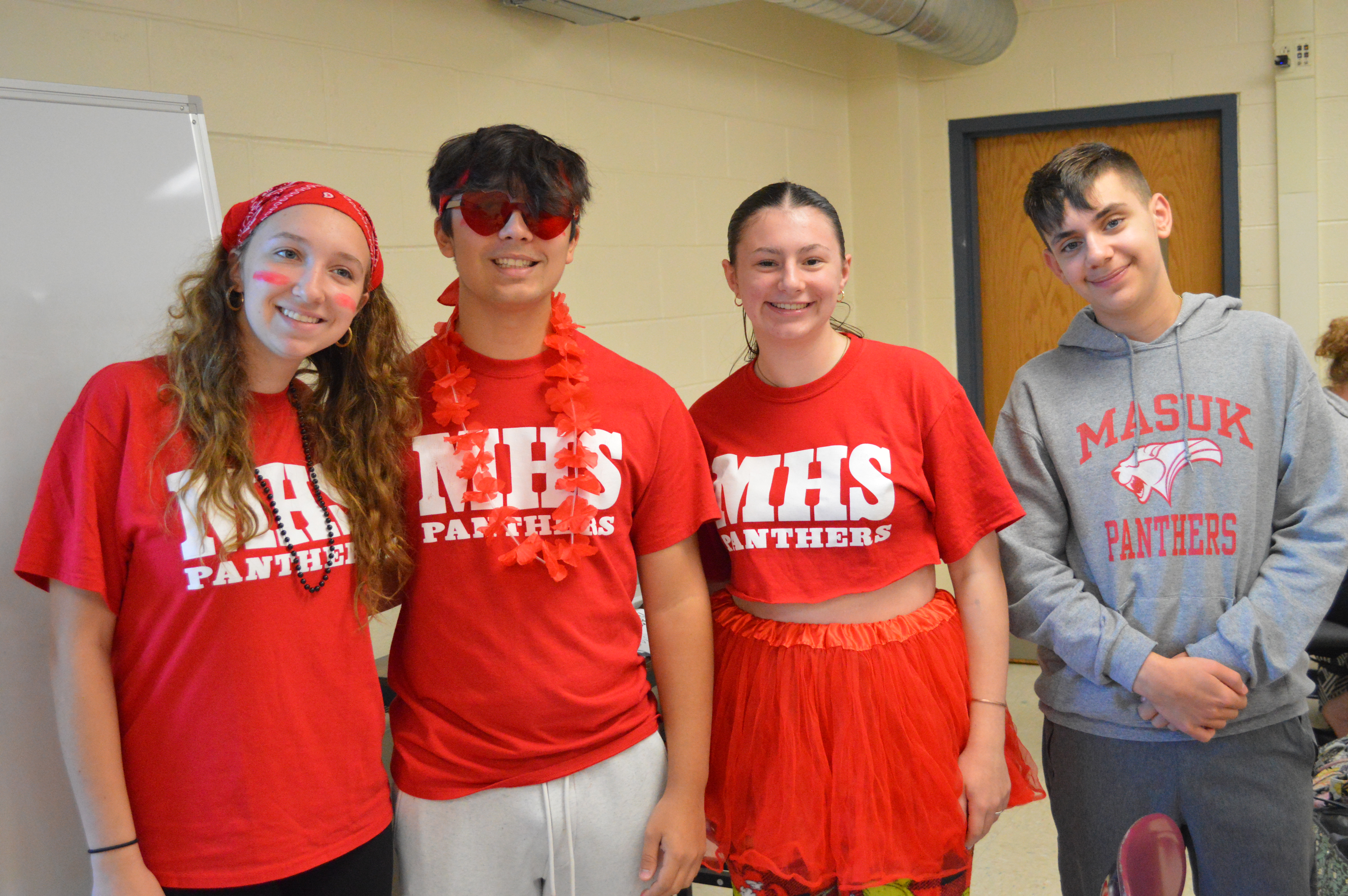 Masuk officially closed out its 2024-2025 Spirit Week in the only way that felt right: in true Panther style. Students came together wearing red white and black and their best Masuk gear to represent their school and teams. Seniors showed up and showed out in their jerseys, while plenty of students wore their jerseys and school merch. The committed students ended the week in boas, tutus and facepaint in a vibrant display of school spirit.