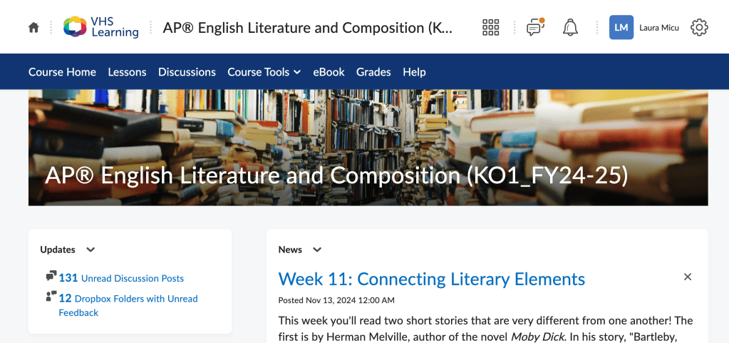 I started VHS AP Lit this year after the in-person class couldn’t fit into my schedule. One of the first assignments we had was a questionnaire asking when, during the school day, we had time to complete this classwork. I didn’t have a study hall, but I did have two late arrivals. While I wasn’t planning on waking up early to finish VHS Lit work before school, just a few days in, that’s what I found myself doing.