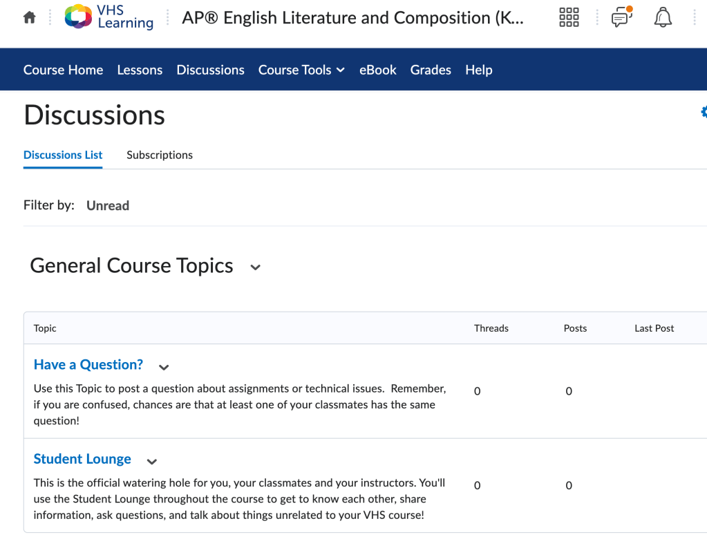 Diving into specific features of VHS, it was obvious that the platform tried to make up for the lack of real-life interaction. Classes are very heavy in “discussions”, which are basically just prompt answers that you have to post to the entire class. From there, you have to comment on other people’s responses, as well.