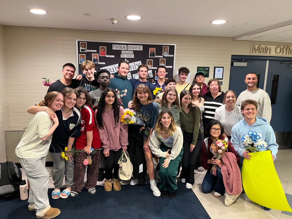 The cast and crew brought their all with lead performances by Muriel Bailey, Ethan Fonck, Daniel Fontana, and Brady Ebner who portrayed their characters with sincerity and humor. The performance captures both the set plot while also incorporating a personalized Masuk High School touch. Senior Brody Pierson, playing Ron Daighten, explained the play day prep that the actors had to participate in, “The process was a lot of hard work with a good set up, the principal’s office, we gotta get in mics and lock in, and before we start off we have to do the speeches, it’s hard work.”
