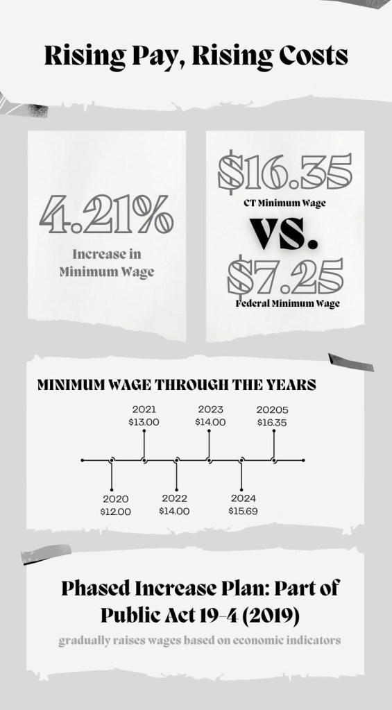 On January 1, 2025 the minimum wage in Connecticut rose to $16.35 per hour, reflecting a 66 cent increase from the previous amount of $15.69. This adjustment is part of a phased plan that has been gradually implemented over several years, aimed at addressing the economic challenges faced by low-wage workers. As the cost of living continues to rise, this increase is seen as an essential move by the state to provide much needed relief to its workers, particularly those employed in industries that have historically low wages. This shift is especially important as Connecticut’s economy continues to adjust to the pressures of inflation and the growing cost of living