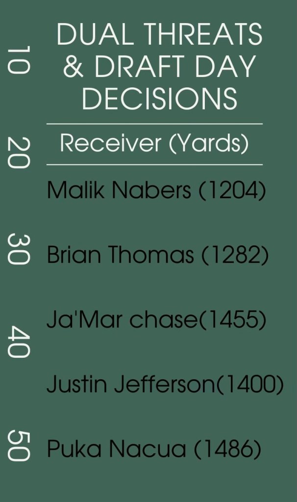 Next, we have Cam Ward and Shadeur Sanders. It is surprising that although the quarterback is often considered the most important position on the field, those two were not chosen to be the number one pick as most think they should. Ward and Sanders are great. They both put up great stats, and I have no doubt that they can’t be successful in the league. The kicker is that quarterbacks today need strong supporting casts. Unless they are a generational talent, which Ward and Sanders, although very talented, are not generational, the quarterback is not a deciding factor, especially early on. Young quarterbacks who get drafted to bad teams are like glass. They are easily breakable. Think of Sam Darnold, or Geno Smith. They played absolutely horrid early in their NFL years, and now with a good supporting cast, they have each had career years. Even Bryce Young had a poor team around him his rookie year, and he turned things around slightly this season. The Titans do not have a good supporting cast to house a rookie. They would be better suited on grabbing a veteran quarterback that has seen the NFL, and waiting until the team is good enough to house a rookie quarterback is the best approach.