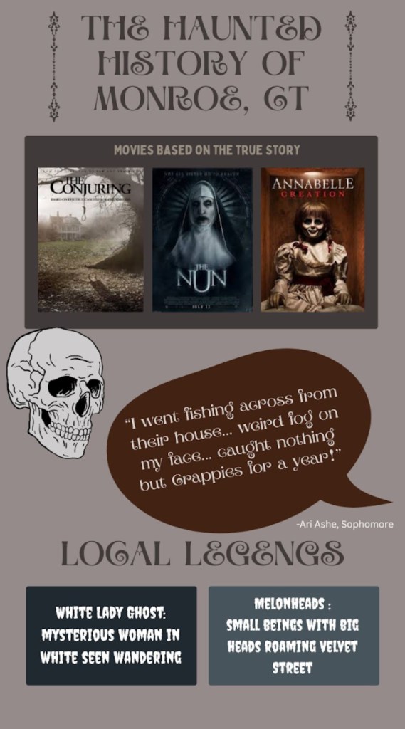 “It’s interesting to think that these two historically spooky and creepy families or individuals are from this town and have roots here. I wonder if there is some connection between ..like all of the objects, the land, the space… Is it like an ancient Indian burial ground, or, like, is there some connection there?” said Allyson Femia, a teacher at Masuk.