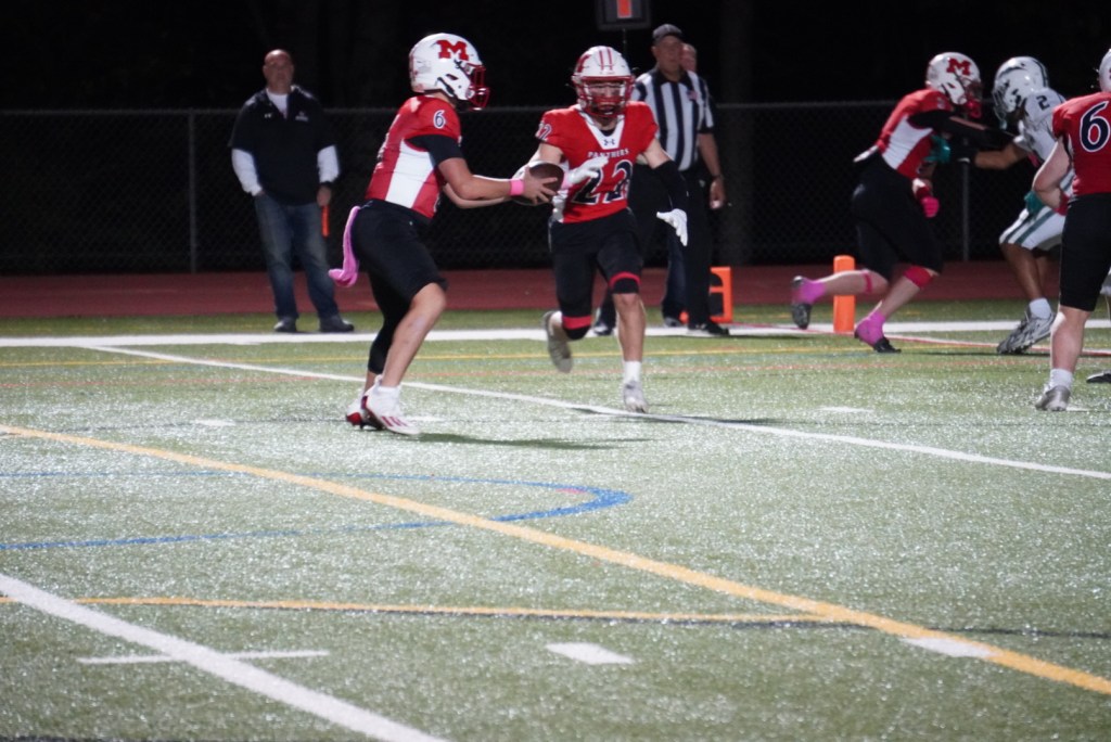 The Masuk Panthers were 1-2 coming into Friday night’s homecoming matchup against the New Milford Green Wave on 10.3. In desperate need of their first home win of the season, the Panther’s showed out dawning the pink theme in honor of ‘Think Pink’. The Panthers mutilated the Green Wave 49-7.