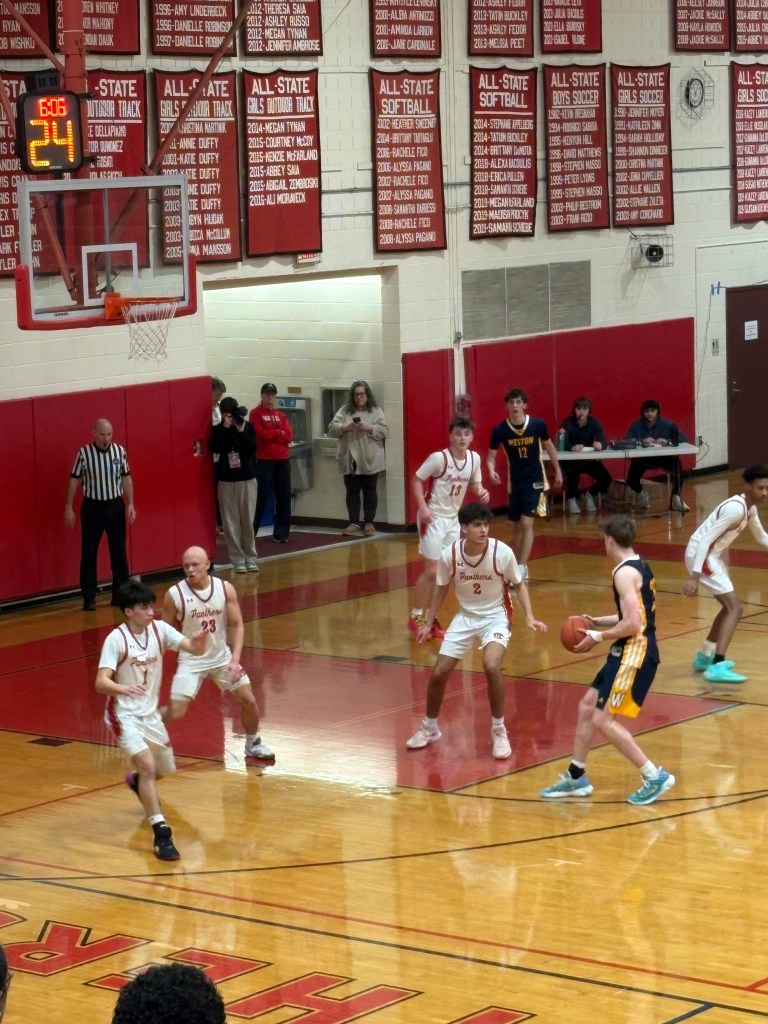 For Weston, Kyle, Olsen, and Justin Linker had all but two of Weston’s fourth quarter points. Zyskowski hit two three pointers, and Boyle had three two pointers, but Weston began running away with it especially after Kyle hit a three to go up 56-52, with under two minutes remaining. After some late game fouling and desperation, Weston ran away with the win 60-53. Rodrigues had two points off a layup, and Africot finished with four points after hitting two free throws and banking in another layup.